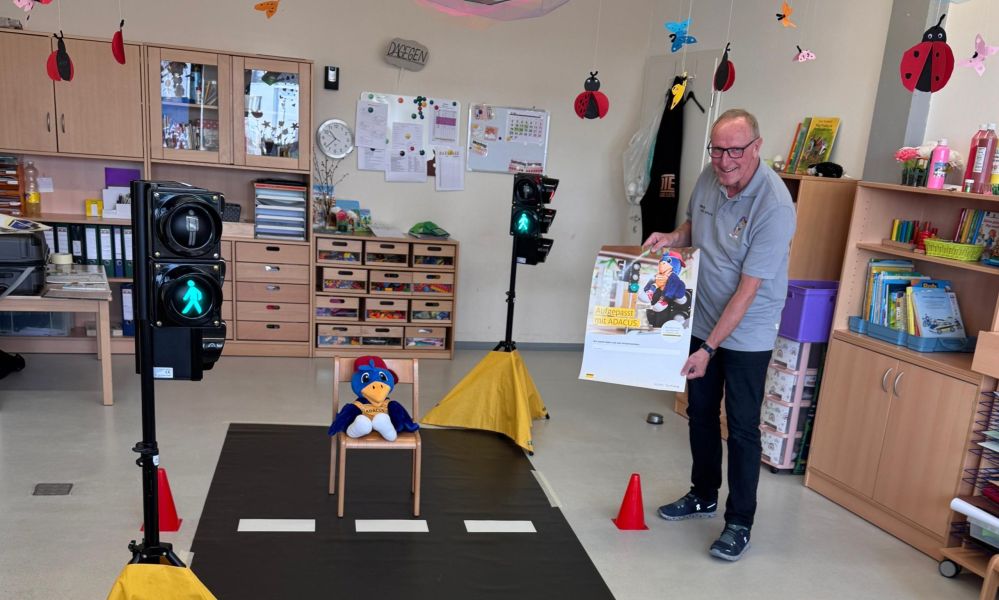Wie verhalte ich mich an einer Ampel? Was gibt es beim Überqueren einer Straße zu beachten? Und welche typischen Gefahrensituationen gibt es? Diese Fragen – und viele mehr – adressiert das Verkehrssicherheitsprogramm „Adacus“ der ADAC Stiftung, an dem unsere Vorschulkinder teilgenommen haben.
