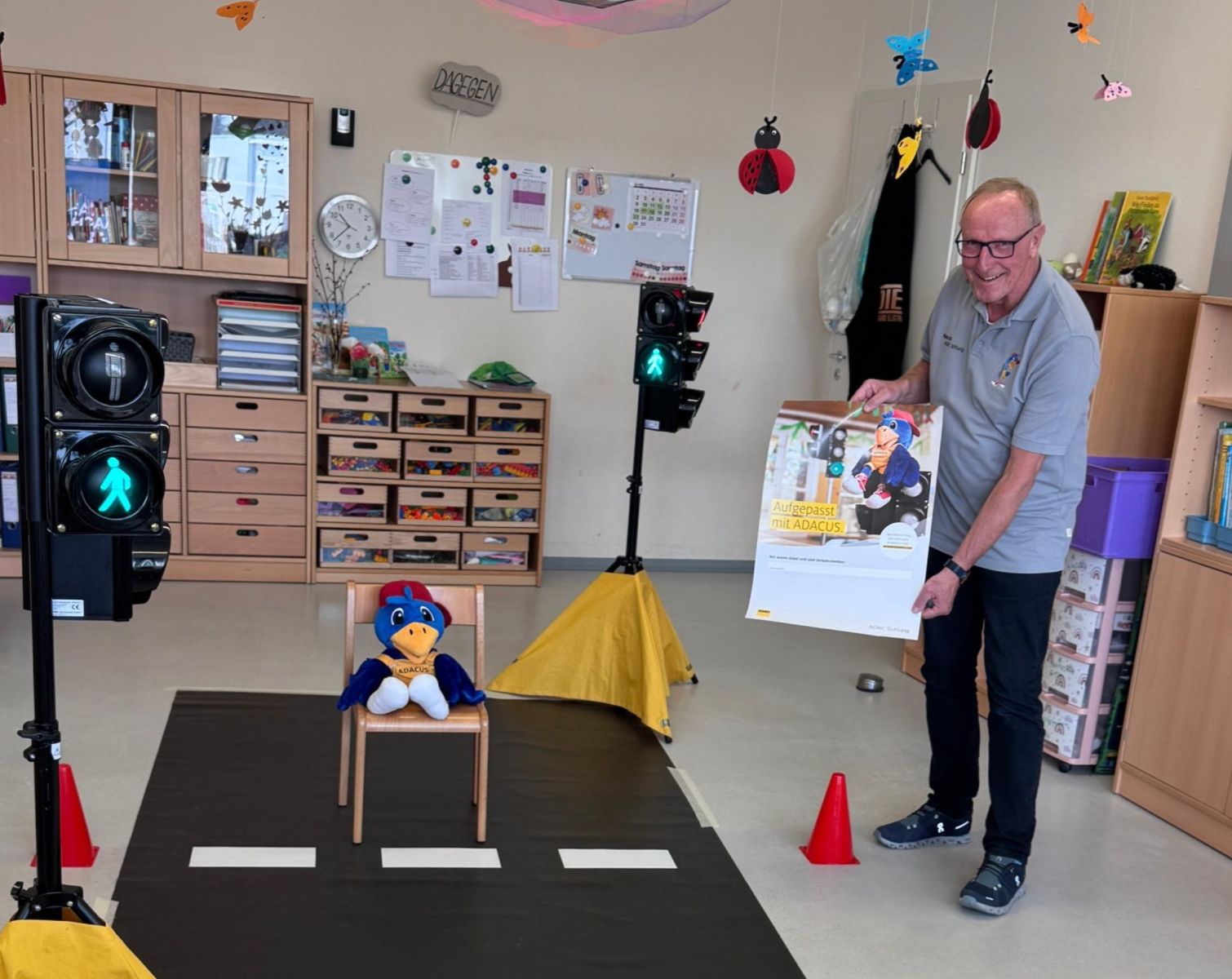 Bei „Adacus“ handelt es sich um ein Verkehrssicherheitsprogramm der ADAC Stiftung, das speziell für Kinder im Alter von fünf bis sieben Jahren entwickelt wurde. Mit viel Spaß, Bewegung und altersgerechten Methoden vermitteln geschulte Moderatorinnen und Moderatoren die wichtigsten Verkehrsregeln und trainieren gemeinsam mit den Kindern das richtige Verhalten im Straßenverkehr. Ziel ist es, die Kinder frühzeitig auf eine sichere und selbstständige Teilnahme am Straßenverkehr vorzubereiten.