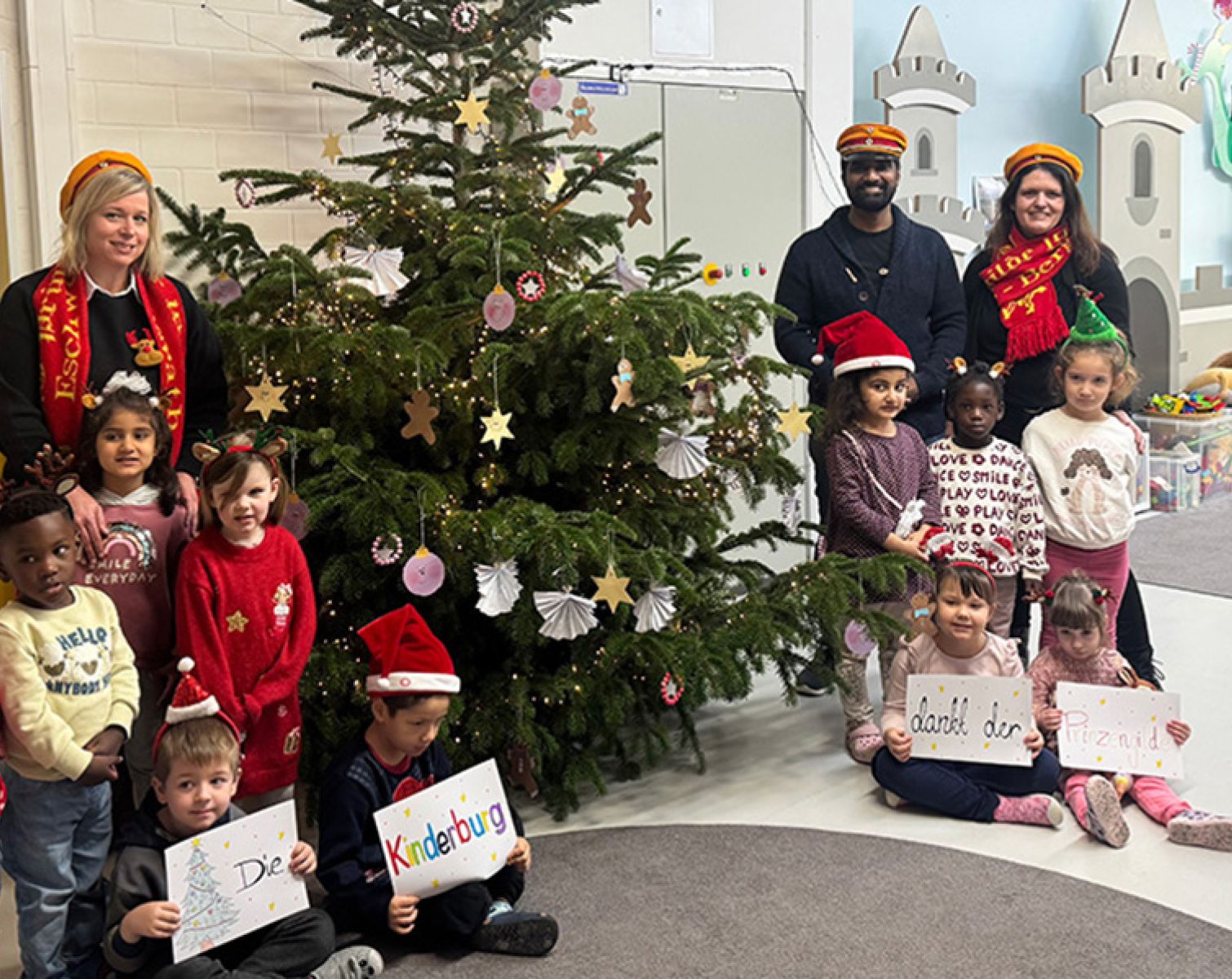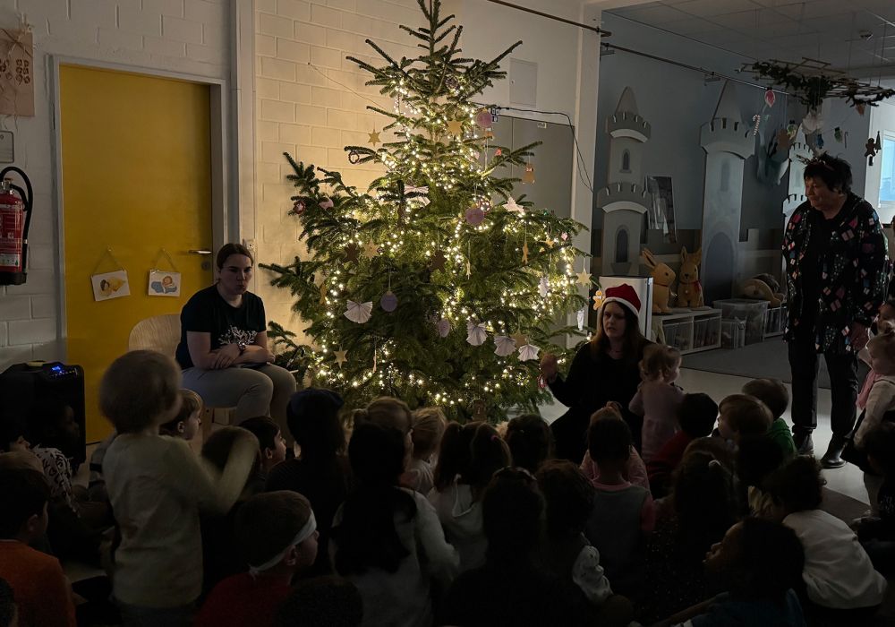 Ein großes Dankeschön gilt der KG Prinzengilde 1947 Eschweiler Bergrath e. V., denn auch 2025 wurde uns ein wunderschöner Tannenbaum gespendet. Dieser wurde von den Kindern mit selbstgebastelten Anhängern geschmückt und war ein echter Blickfang.